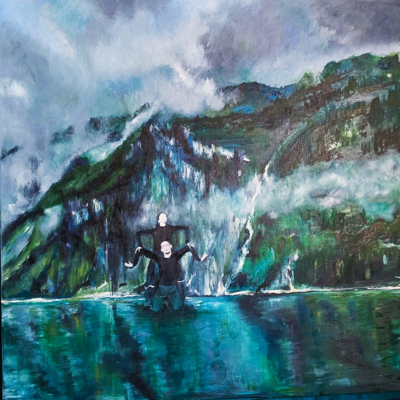 de Vlucht, olieverf op doek 80 x 80 cm