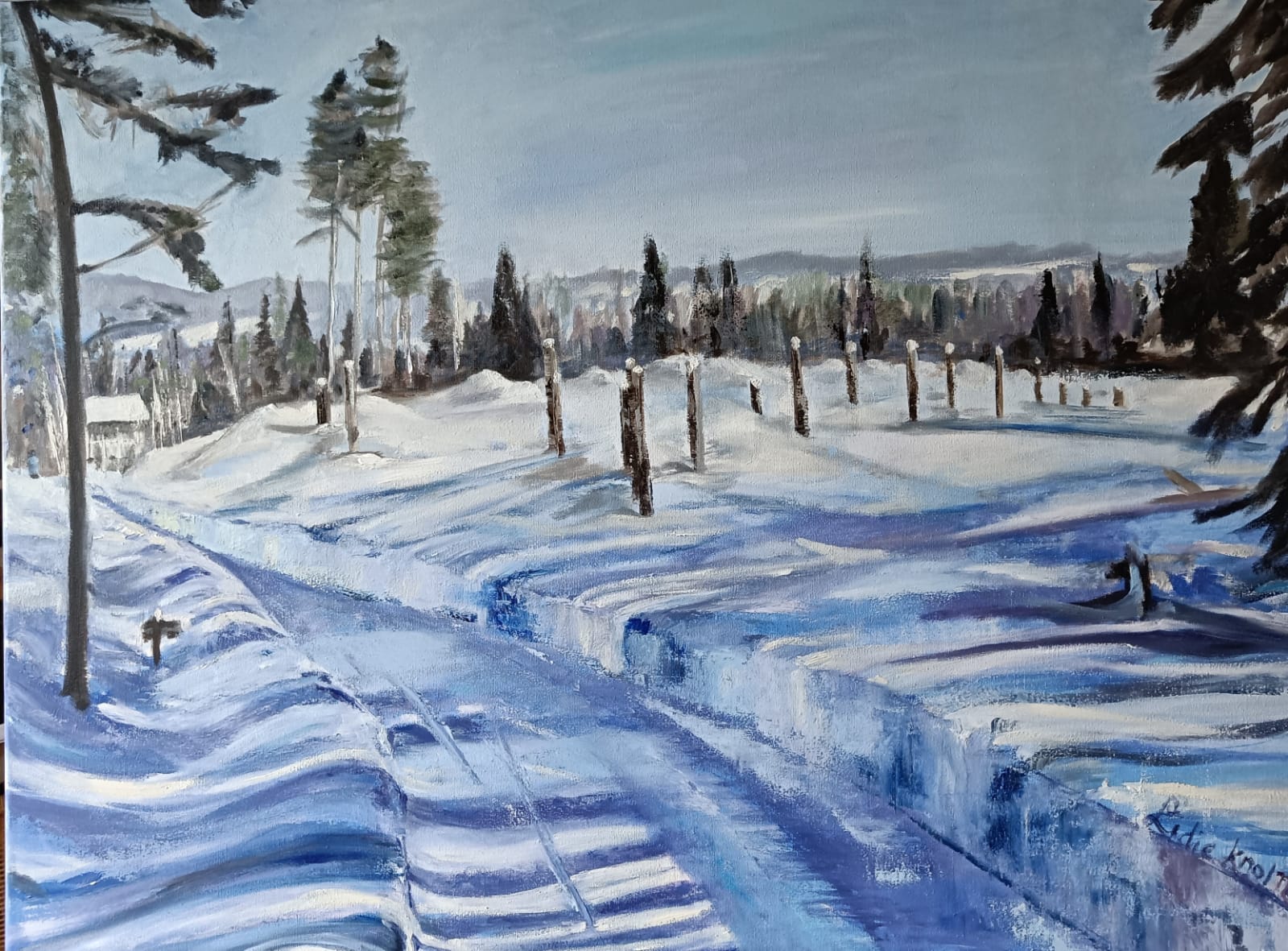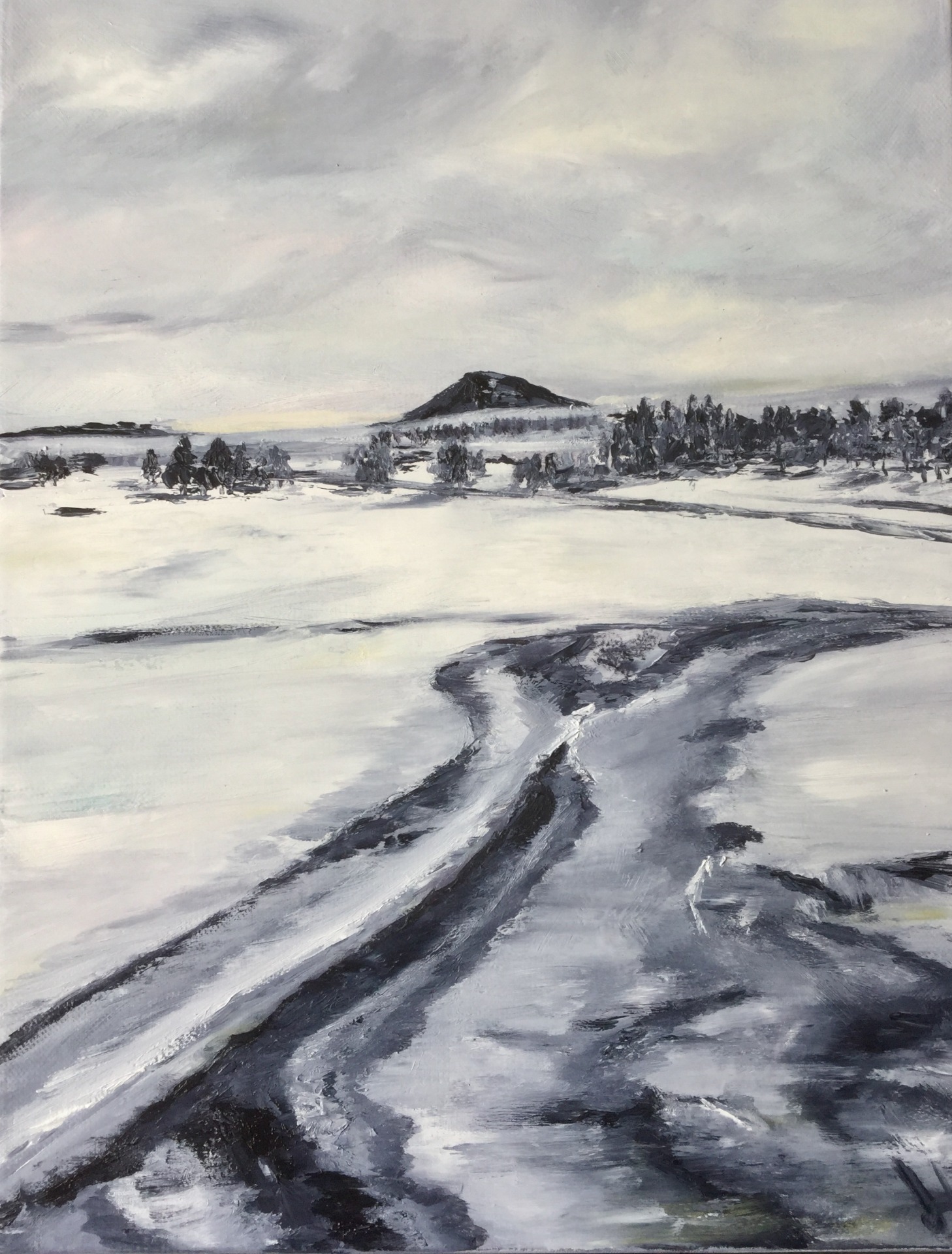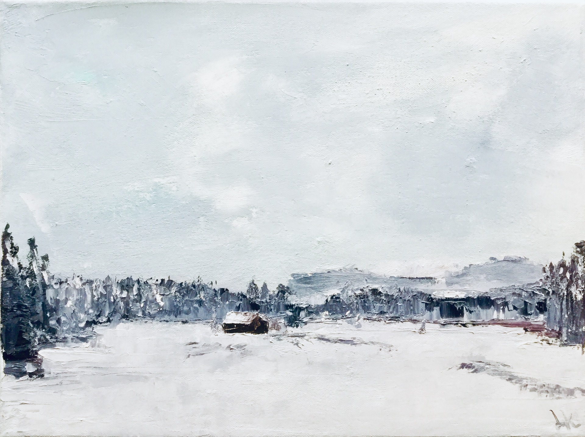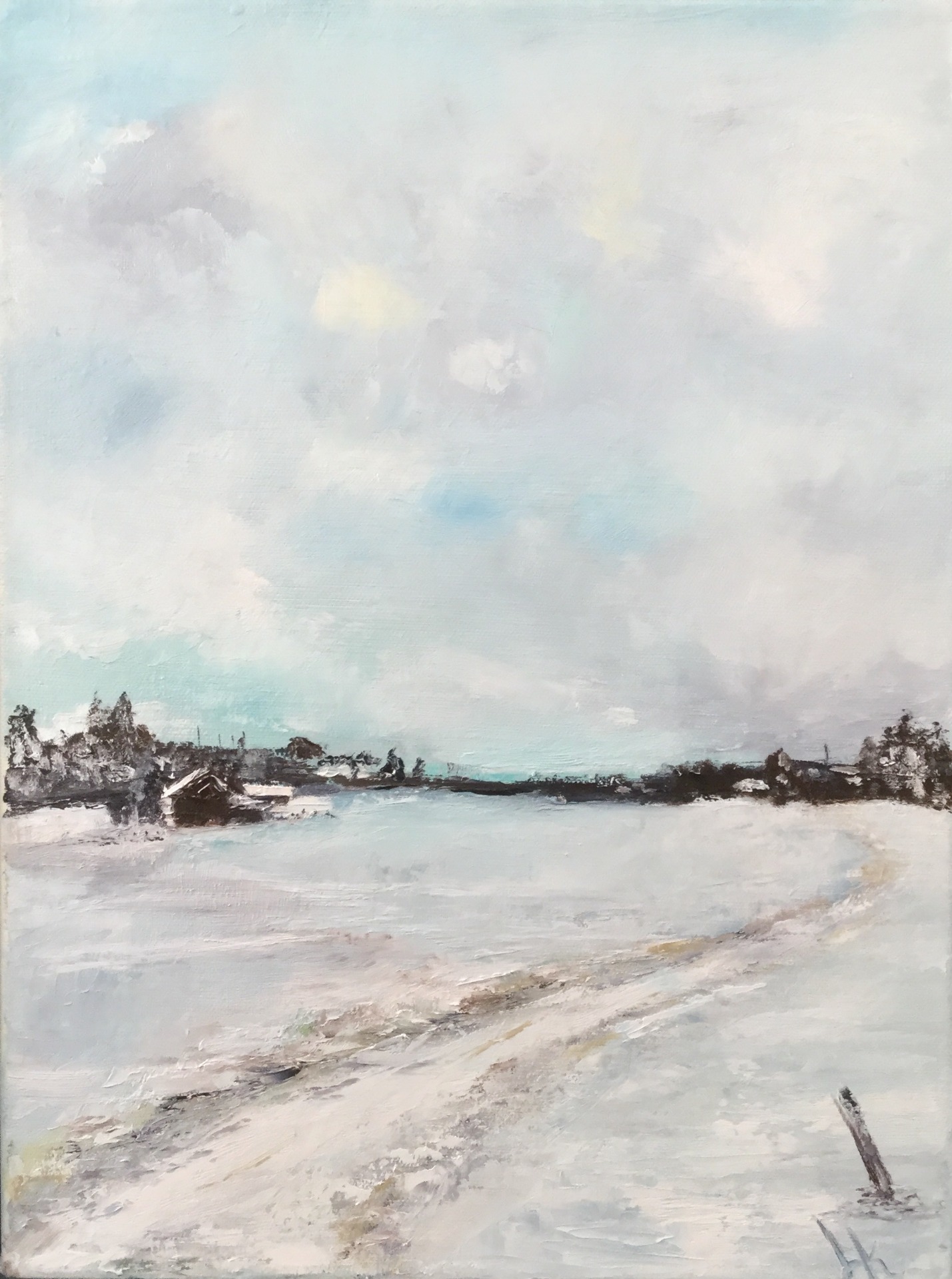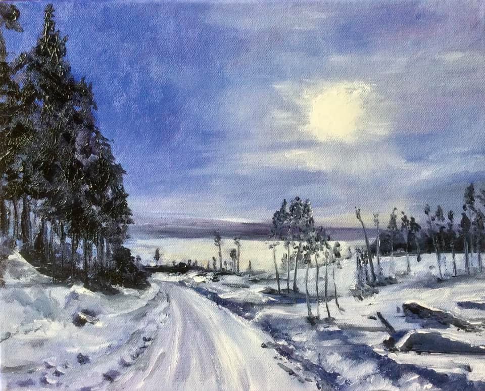 vintersolen i Hälsingland olja po duk 24 x 30 cm