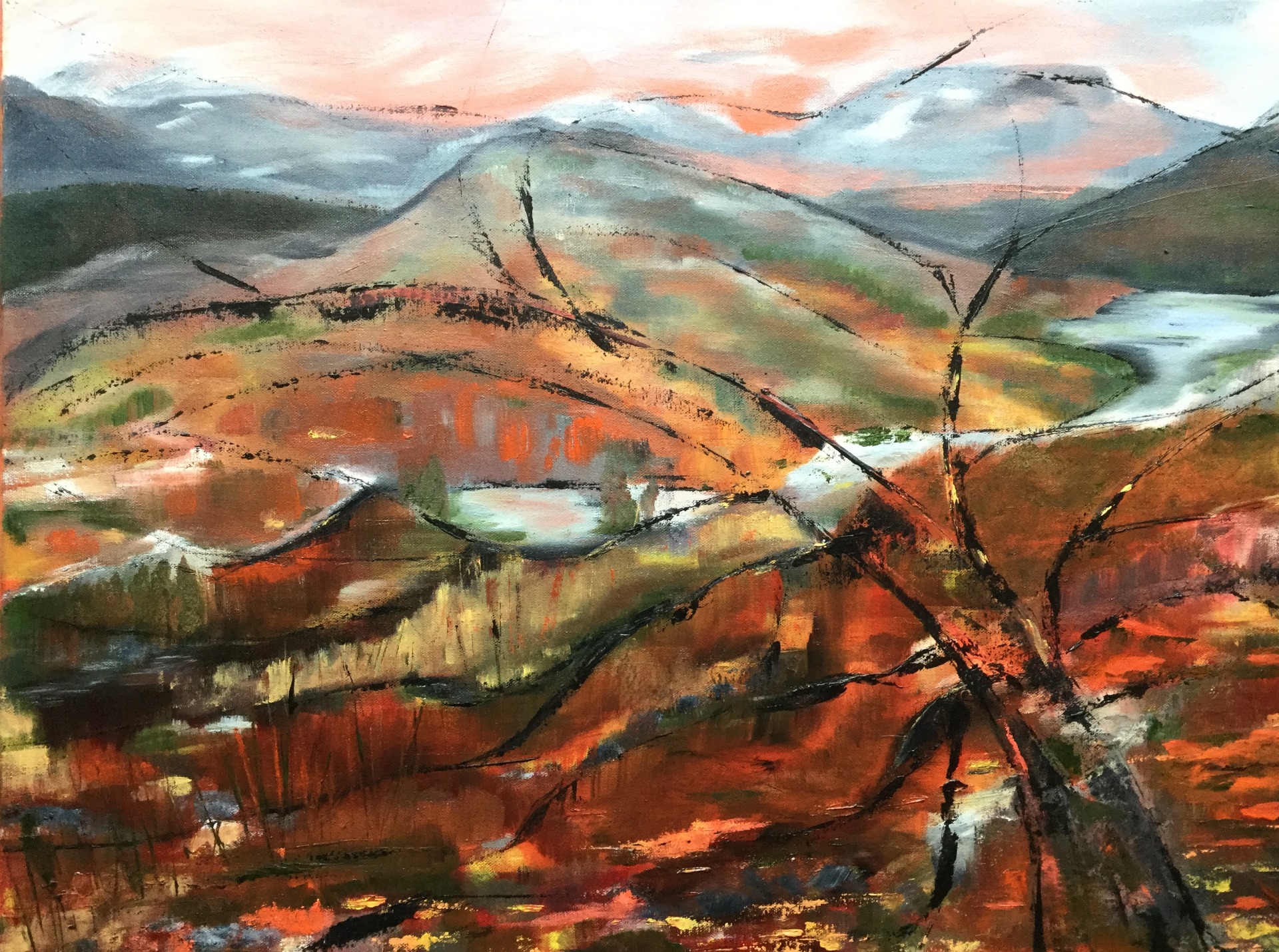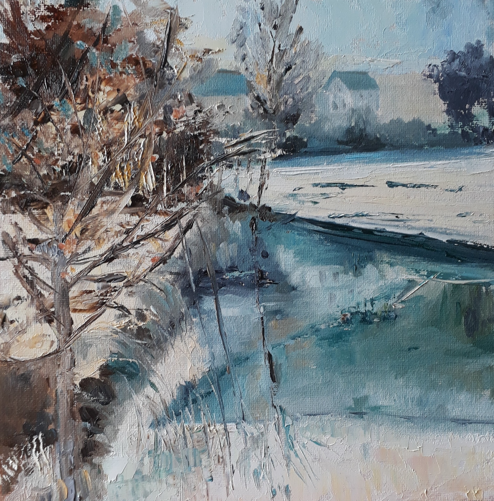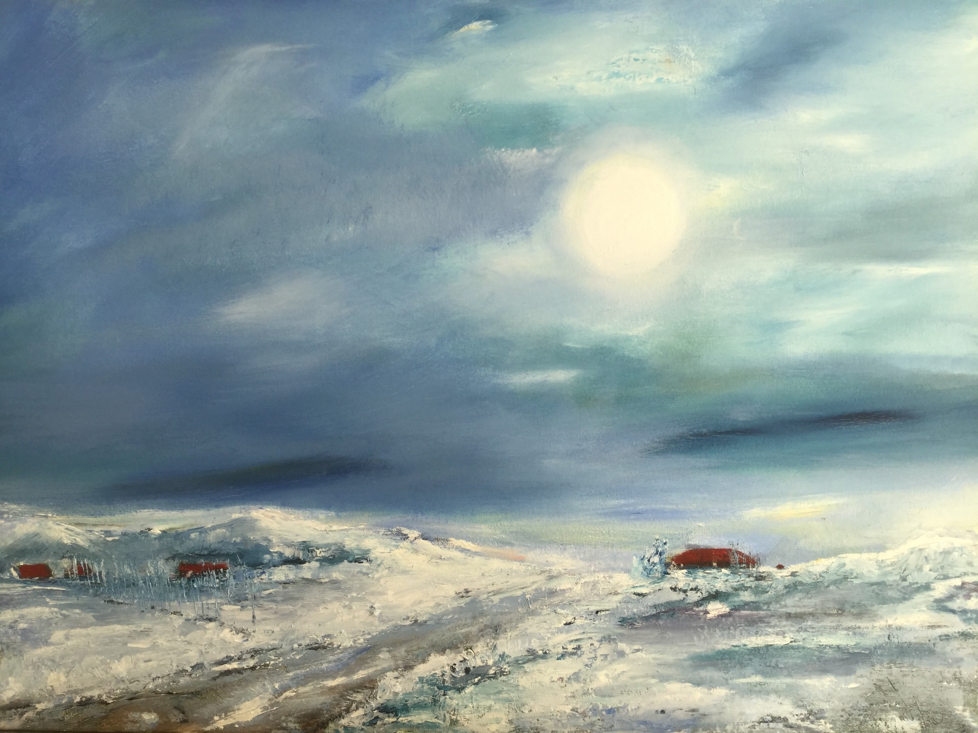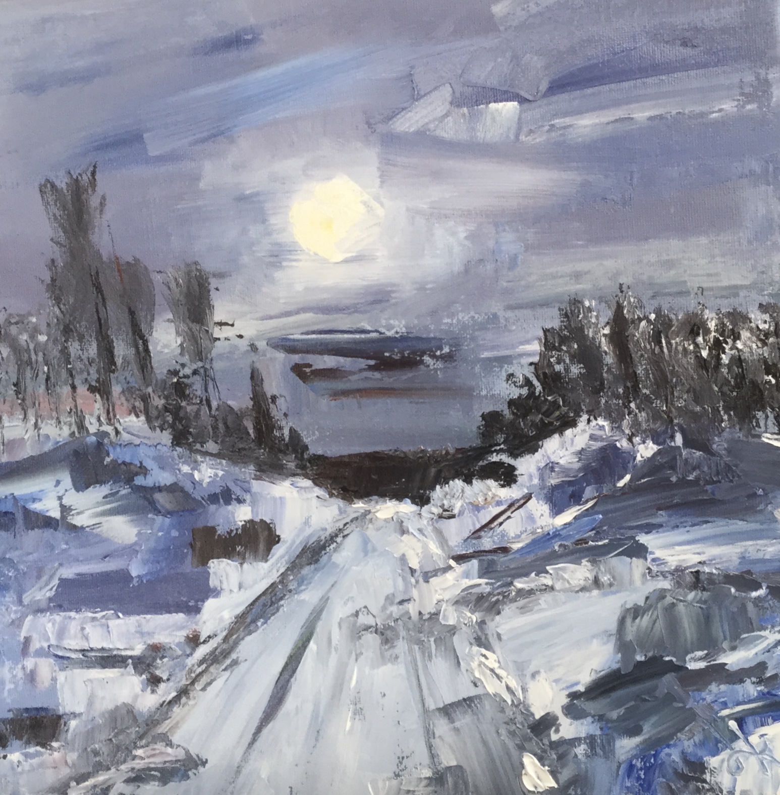 vintersolen i Hälsingland olja po duk 24 x 30 cm