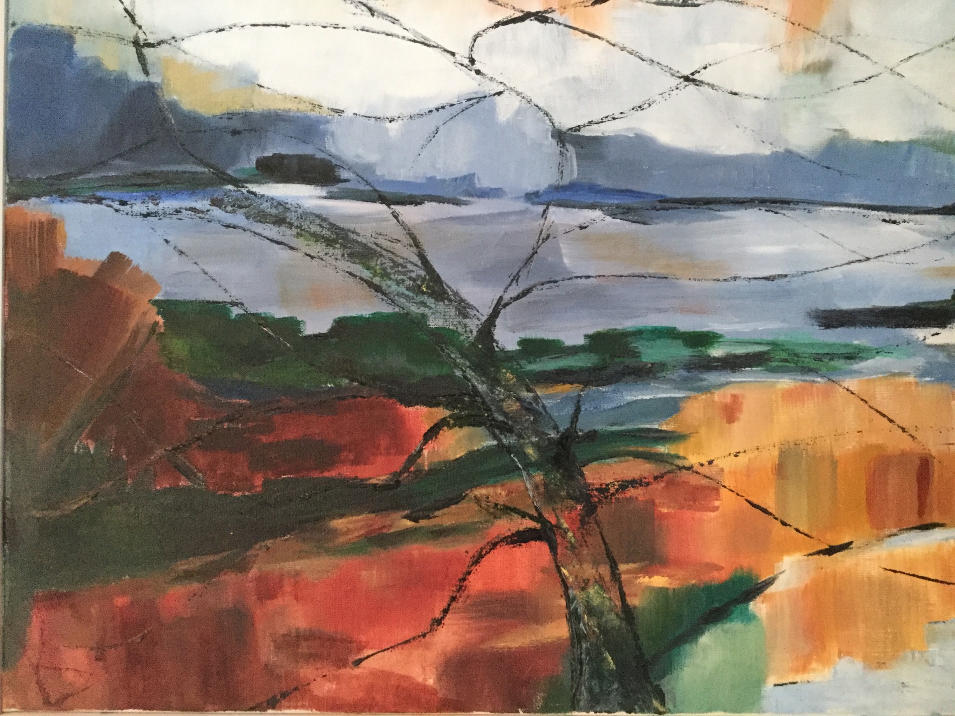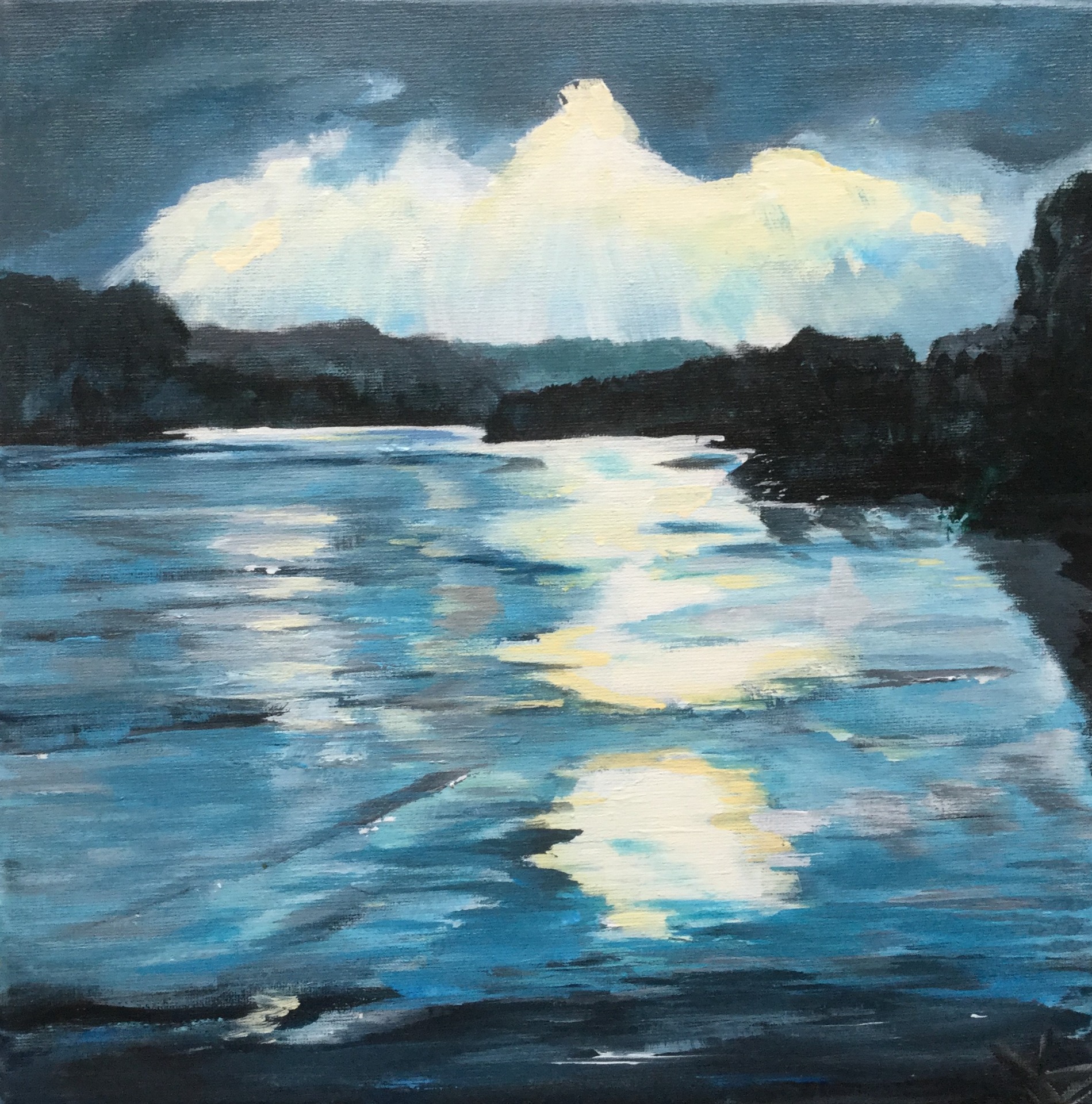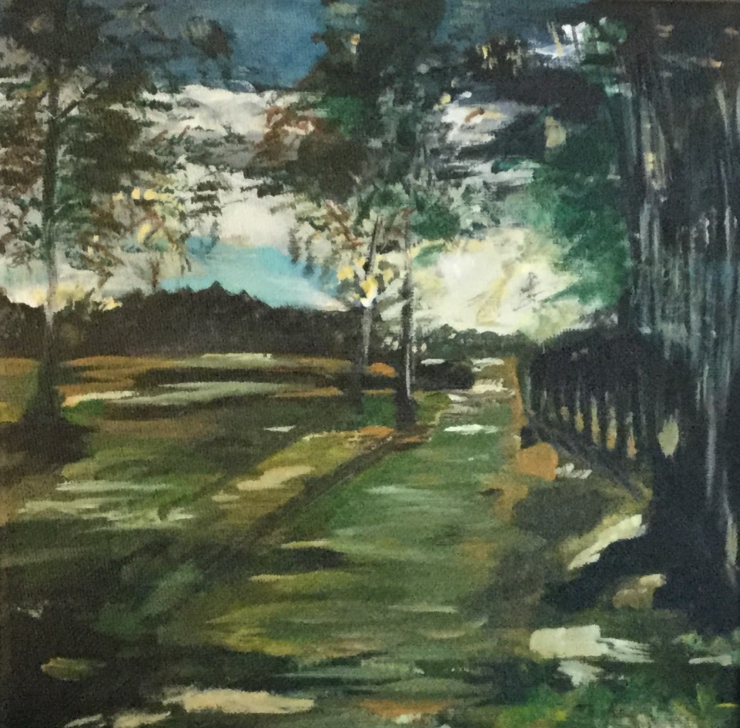 Bäckan, acryl po duk 20 x 20 cm (bakom May)