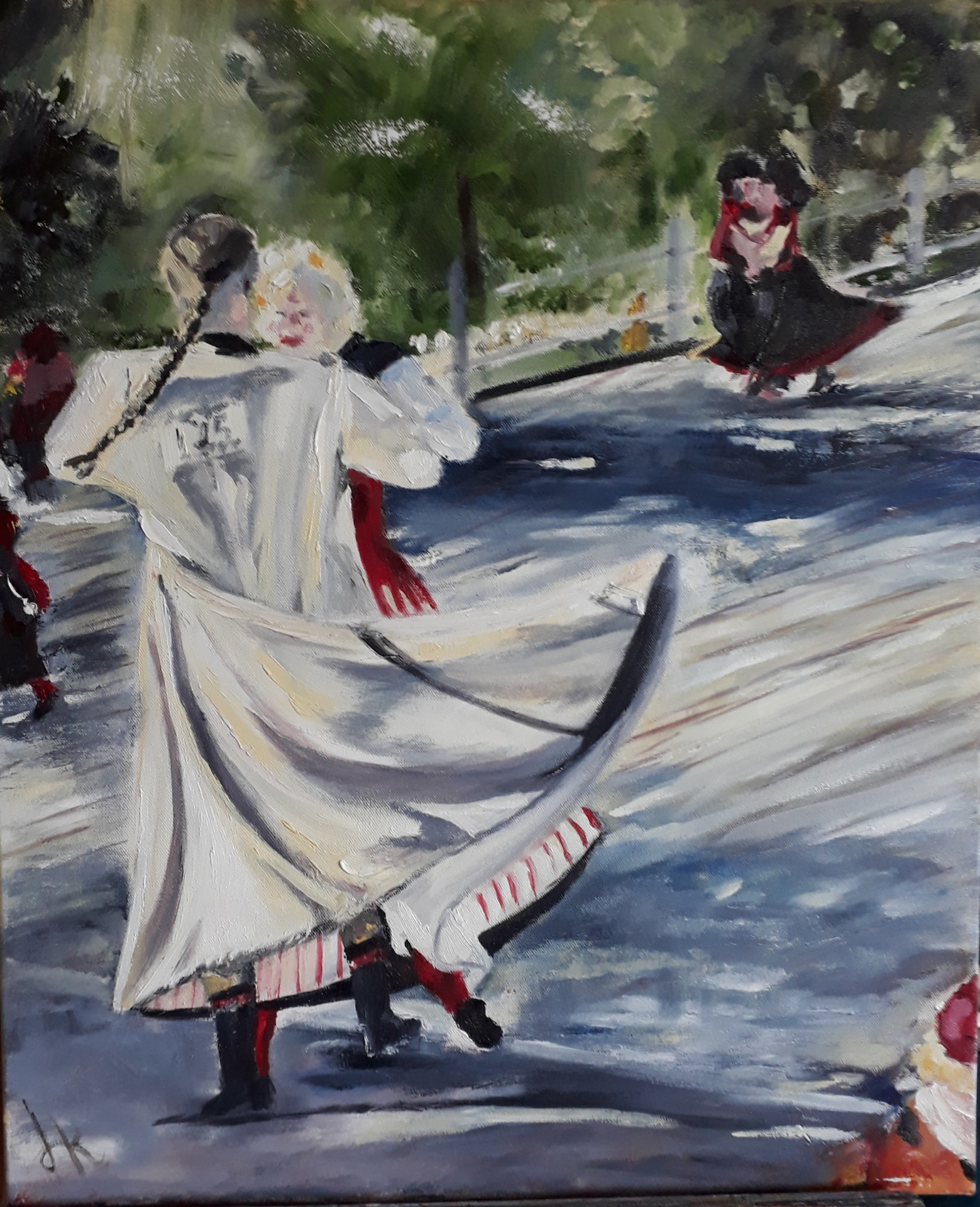 Hälsingar hambon i Järvso, olja po duk 50 x 60 cm